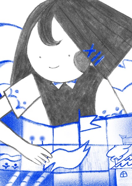 Детское пространство в стилистике гжель, с адаптированными под формат паттернами и иллюстрациями.