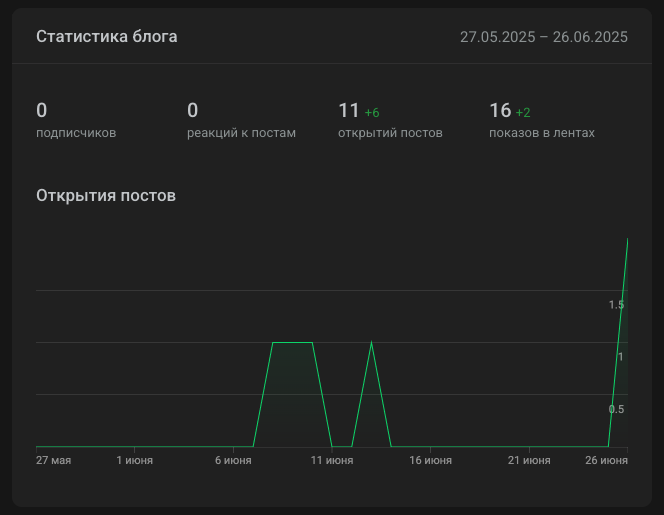 Статья на VC.ru также почти не показала результата (10 просмотров, ноль вовлечения), что может говорить либо о слабом попадании в интересы платформы, либо о неудачной подаче.