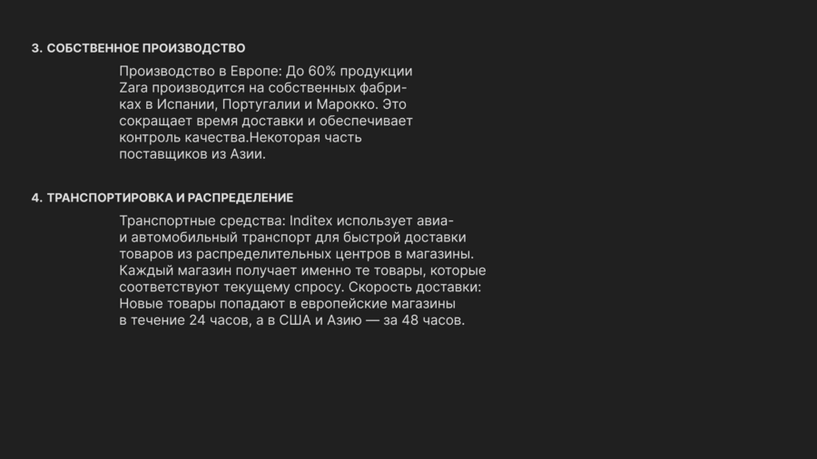 Кажется, что Massimo Dutti не типичный fast-fashion бренд, в отличие от большинства других в INDITEX Group: ДНК тихой роскоши вряд ли напрямую ассоциируется с быстрым потреблением. Несмотря на это цикл производства по срокам такой же, как и в типичном примере fast-fashion бренда Zara.