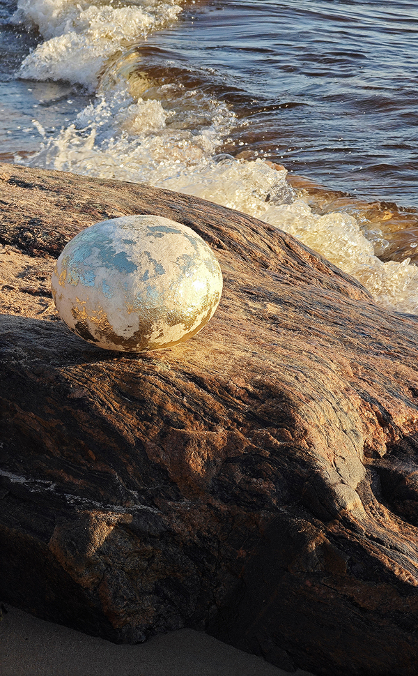 In July 2024, a presentation of the brand’s golden collection took place, which included a pouf model called «Gold of Ladoga.» This soft stone in shabby chic style reflects all the beauty of the sunrise over Lake Ladoga. The worn gold changes, so the pouf can look entirely different throughout the day. The stone reflects sunlight and artificial lighting, capturing the shades and colors of the surrounding space.