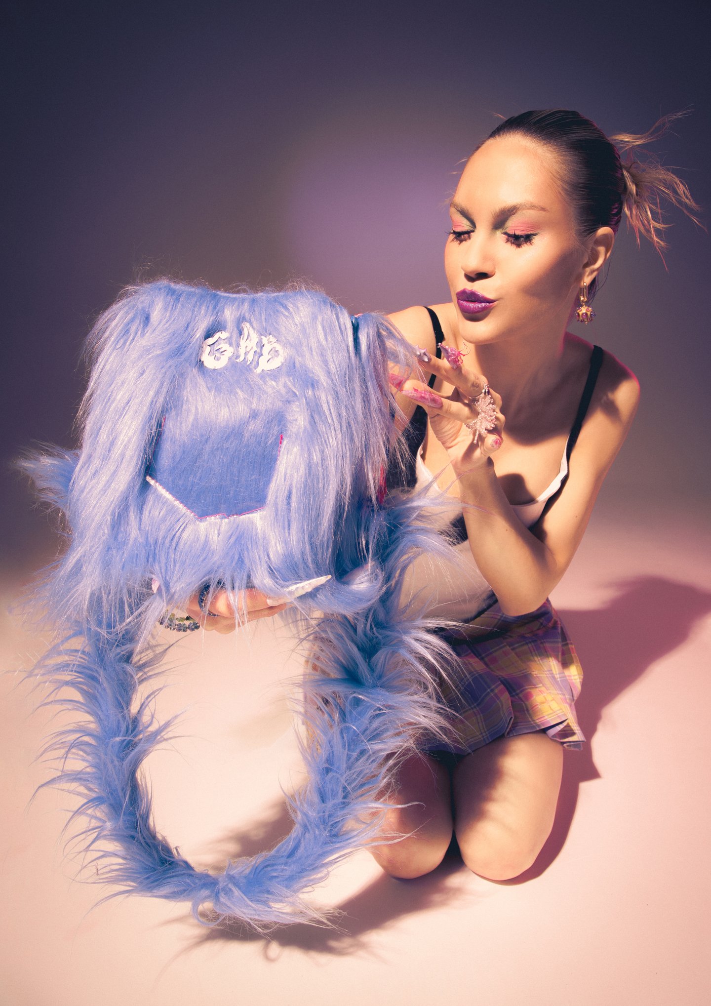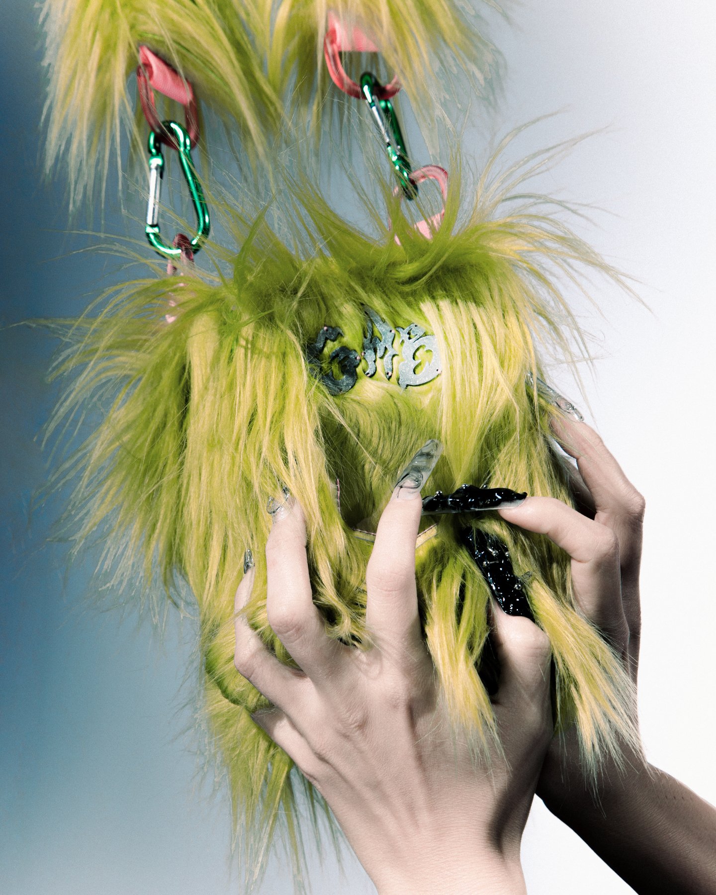 The fur bags for each represent different characters from «The Corporation of Monsters»: Vazovsky (green), Little Boo (pink) and Sally (blue).