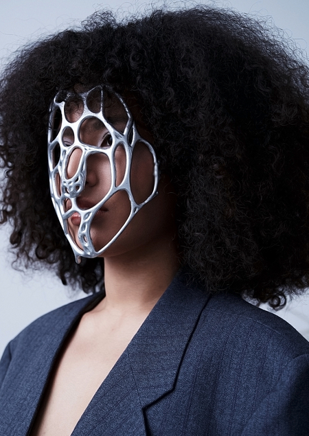 СИНТЕЗ — это проект уникальных фэшн-масок, разработанных в коллаборации с апсайкл брендом одежды CLEDER. Дизайн изделия основан на различных структурах, которые можно наблюдать в природе. Каждая маска в коллекции создана с помощью 3D-печати и 3D-сканирования, чтобы обеспечить высокое качество и инновационный дизайн. Использование данных технологий позволяет детально воспроизводить идею продукта и создавать точную посадку на лице.