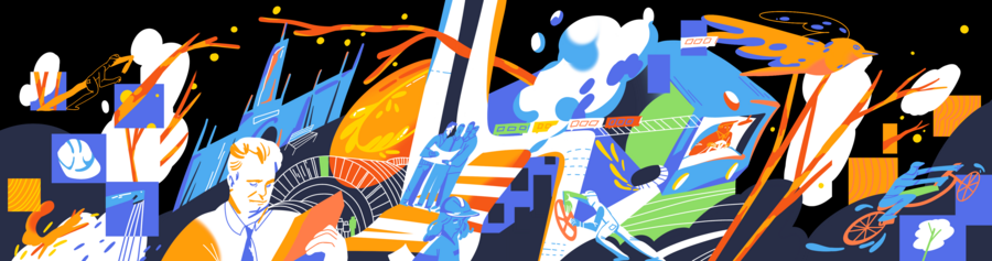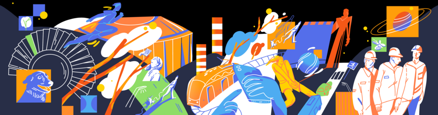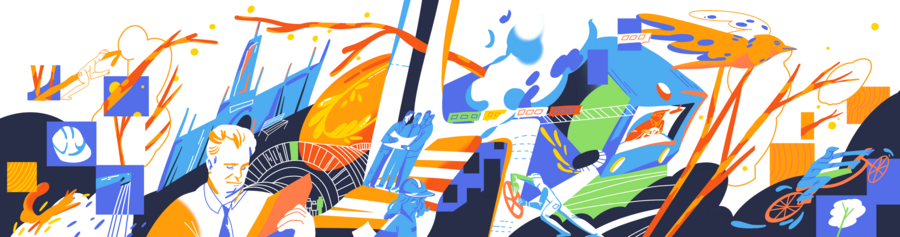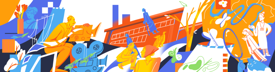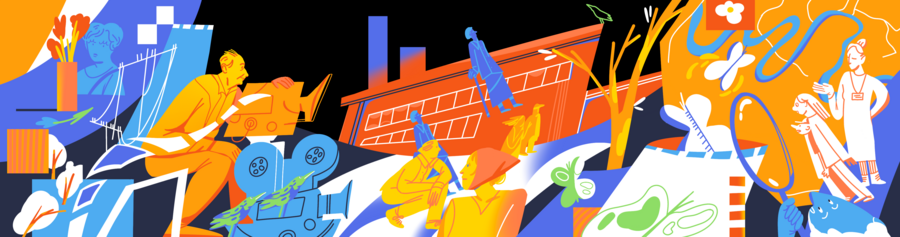 В дополнение к муралам для ТЭЦ я сделала серию иллюстраций для Академического района, в котором она расположена. Он узнается благодаря уютным зеленым дворикам, а также большому количеству институтов, в честь которых и получил свое название.