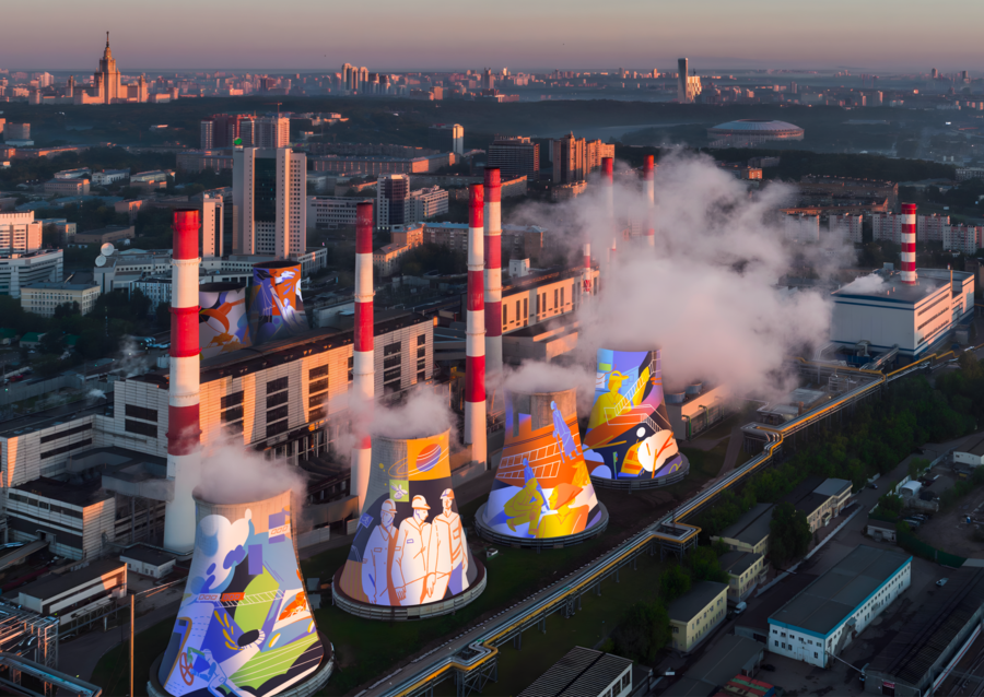 Историю ТЭЦ-20 я условно разделила на несколько частей, каждая из которых отображена на одной из четырех градирен, расположенных со стороны железной дороги.
