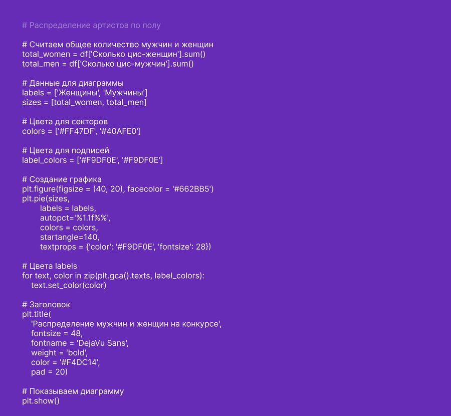 Одной из моих задач было провести контент анализ — проанализировать участников конкурса, их места, отношение к тому или иному блоку стран, узнать количество женщин и мужчин на конкурсе, а также изучить популярность тем песен.