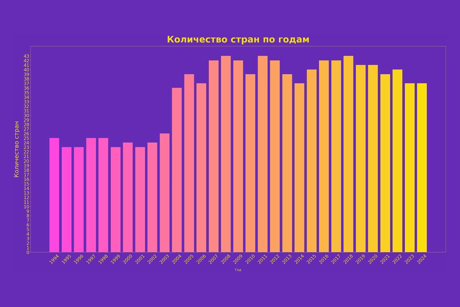 Поэтому финальная таблица была отфильтрована, в нее попали конкурсы с 1994 по 2024 включительно.