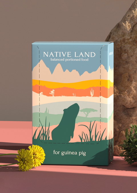 The guinea pig habitat was chosen as the visual metaphor for the main packaging. The graphic style of the package references the natural habitat of the rodent and emphasizes the natural character of the ingredients.