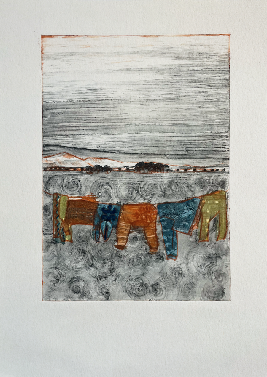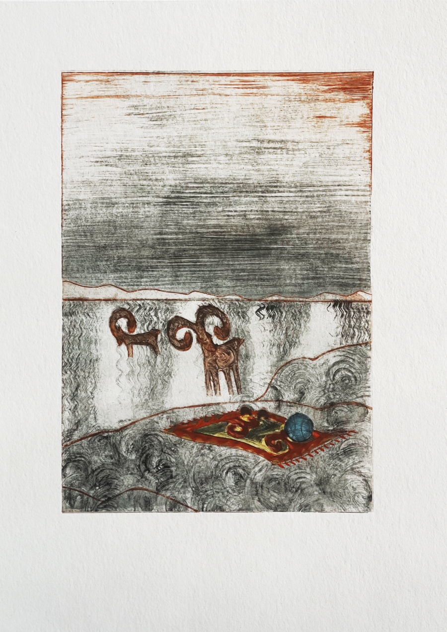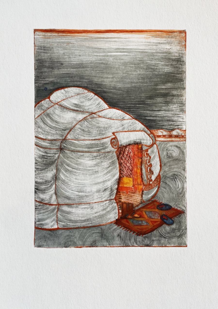 Серия работ, выполненная благодаря печатной графике в смешанной технике, монотипии и гравюры. Проект вдохновлен колоритом Кыргызстана и жизни людей там.