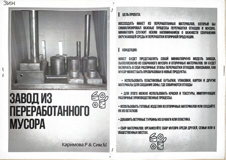 Цель проекта воссоздать макет из переработанных материалов, который бы символизировал важные процессы переработки отходов и мусора. Миниатюра служит неким напоминанием о важности сохранения окружающей среды и переработки вторичной продукции.