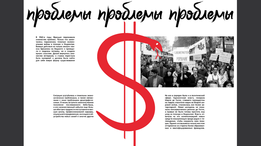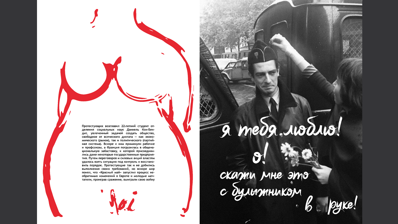 Представляю Вашему вниманию концепцию издания. Книга-журнал повествует о событиях Красного Мая во Франции и неизбежных переменах в обществе и культуре, которые они повлекли за собой