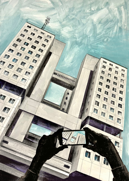 Серия из крупноформатных иллюстраций, созданных для календаря. В работах передано личное восприятие родного города через образы моря, советской архитектуры, следов немецкого прошлого и повседневной эстетики. Иллюстрации сочетают в себе элементы разрушенного и живого, ускользающего и вечного. Это попытка уловить атмосферу Калининграда — противоречивую, многослойную и визуально насыщенную.
