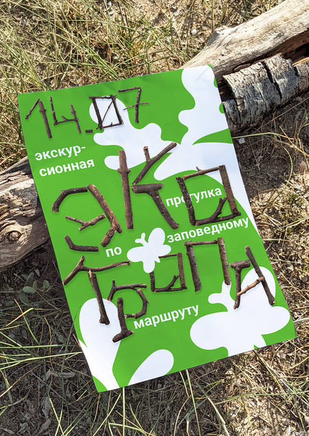 Для проекта был создан фирменный шрифт (из собранных в лесу палок). Витиеватые изгибы веток делают шрифт похожим на лосиные рога и вызывают ассоциации с диким лесом. Характерные для палок резкие ответвления придают буквам новые непривычные изгибы. При этом узнаваемость знака не теряется.