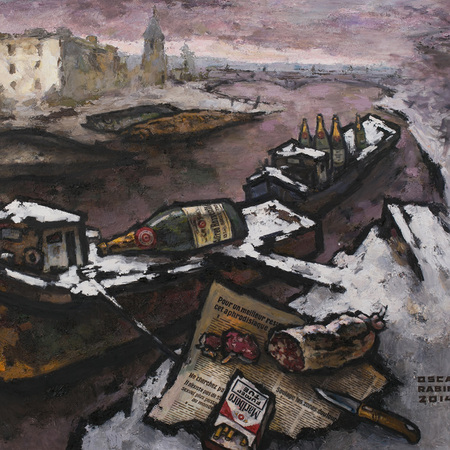 [Фрагменты] 1. Натюрморт с краской и Парижской водкой. 1997 // 2. Транспортировка шампанского по Сене. 2014
