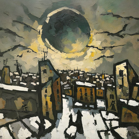 prompt = 'a painting in RABIN style, oil painting, a city with a moon in the sky'