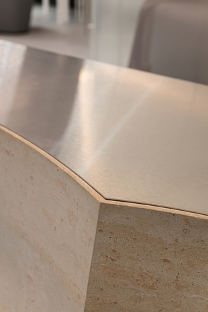 Additional pivoting partitions, glass transformable elements, and other flexible solutions enhance the adaptability of the zone, allowing seamless transitions between functions. The «Golden Petal» itself is a highly complex engineering structure featuring a custom pivot hinge, concealed ceiling and floor rails, and hidden roller mechanisms. Despite its impressive weight, it can be easily moved by a single person.