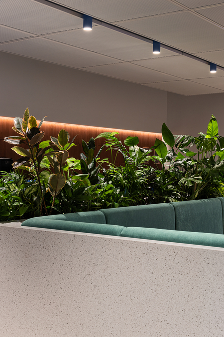 Given the large number of employees relocating to this office, efficient spatial planning was a priority. Instead of numerous informal zones and relaxation areas, coffee points serve as hubs for communication and casual interactions. Every functional block on each floor has its own coffee point, which also acts as a design focal point, integrating visual accents and distinctive stylistic elements. These spaces are not only for breaks but also serve as mini-gathering areas for informal discussions and content presentations.