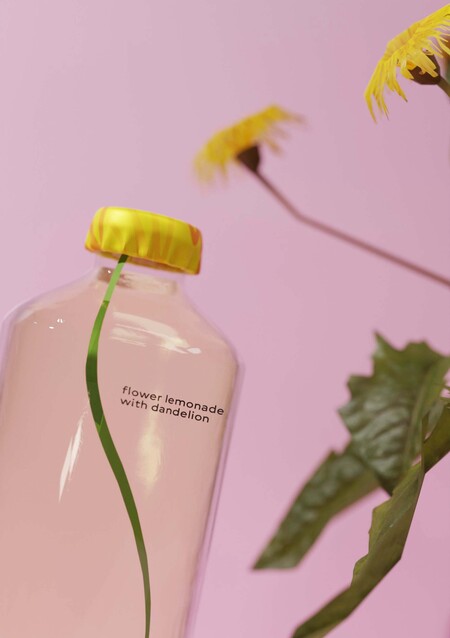 «fleur» — лимонад с натуральным составом премиум-класса, состоящий из лимонного сока и настоящих цветов! концепция упаковки — сам цветок, где крышка становится цветком, а на бутылку наносится стебель