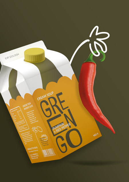 GREENGO — новый продукт для потребительского рынка Израиля. Первый на полке магазина крем-суп, который станет здоровой альтернативой суперсладким и химозным снэкам, окружит вас любовью и заботой и успеет с вами по всем вашим делам. В проекте представлена упаковка GREENGO.