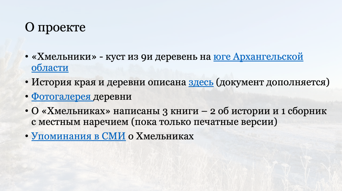 История края и деревни описана здесь (документ дополняется) https://docs.google.com/document/d/1CtphSusH5z_dDSy6UR6raeZzwJcSBcgcYkPmxCt6-Hc/edit?tab=t.0