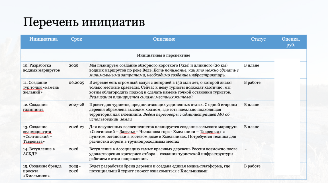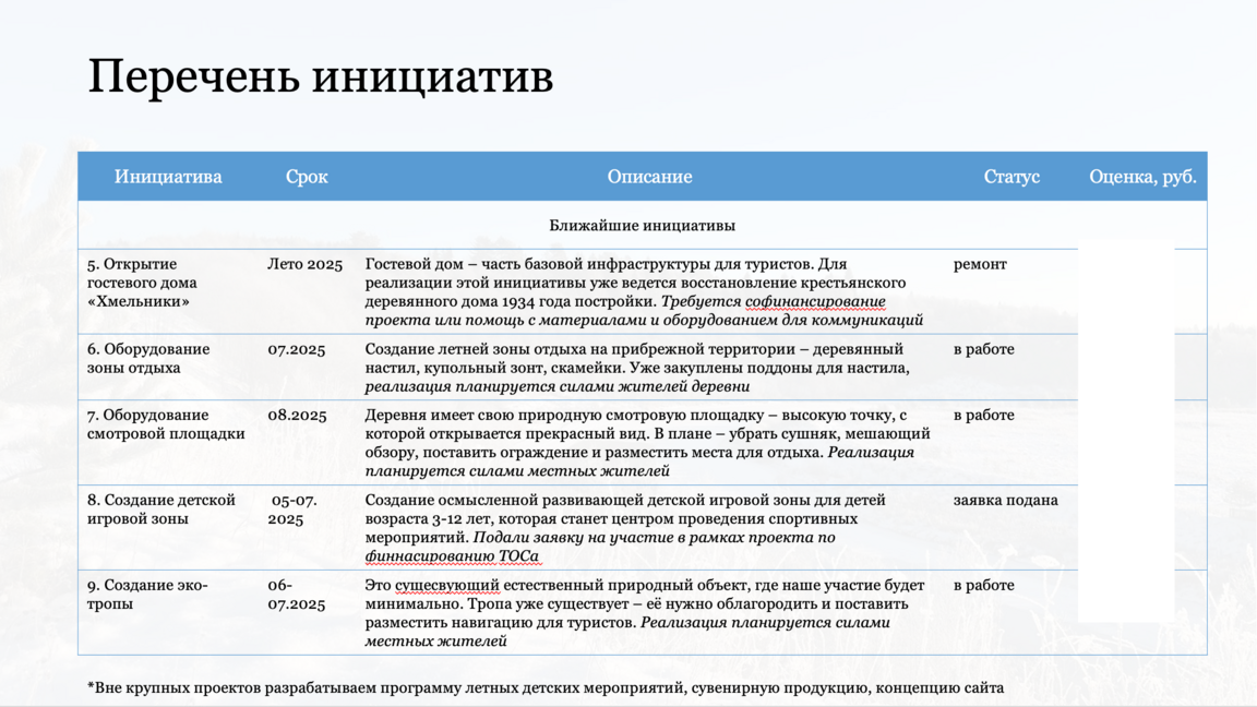 И нам нужна помощь в том, чтобы сделать брендирование со смыслом, на основе истории деревни и наших реальных ресурсов.