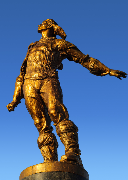 Первоначально скульптуру планировалось установить на месте падения стратостата в деревне Потиж-Острог, переименованной в 1939 году в Усыскино, но затем выбор пал на столицу Мордовии. В расположенной в 70 км от Саранска деревне, где проживает ныне 49 человек, есть свой мемориал аэронавтам.