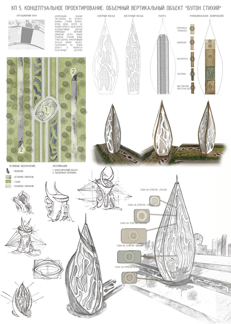 Концептуальное проектирование вертикального объекта «Бутон стихий»