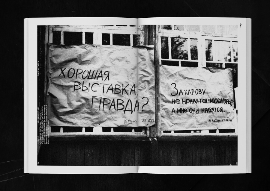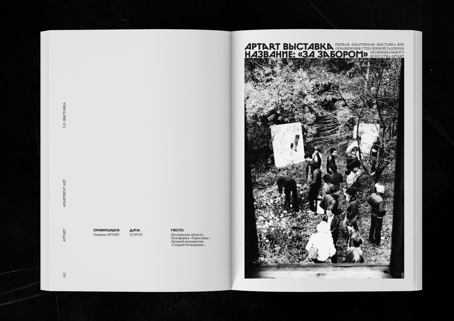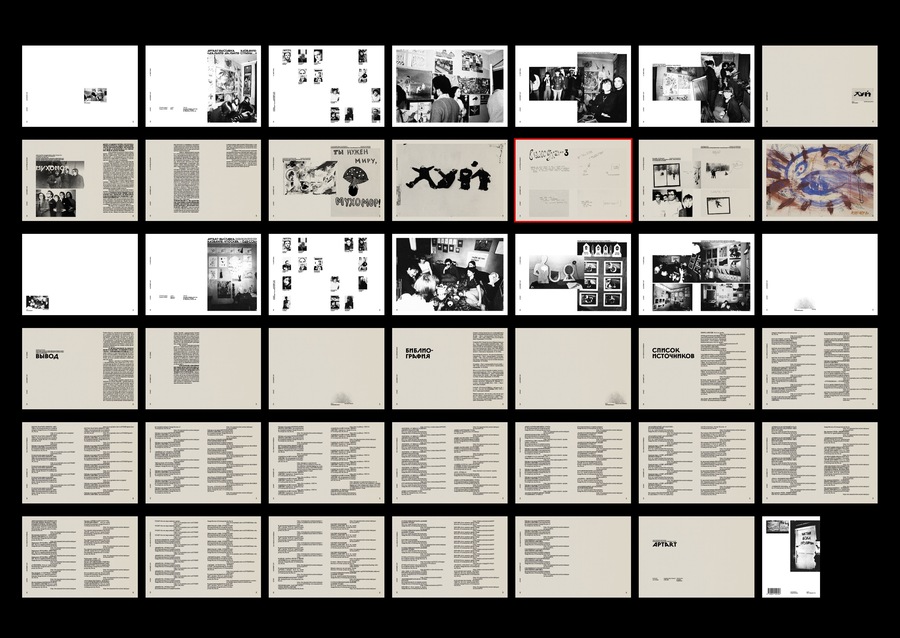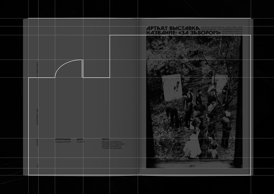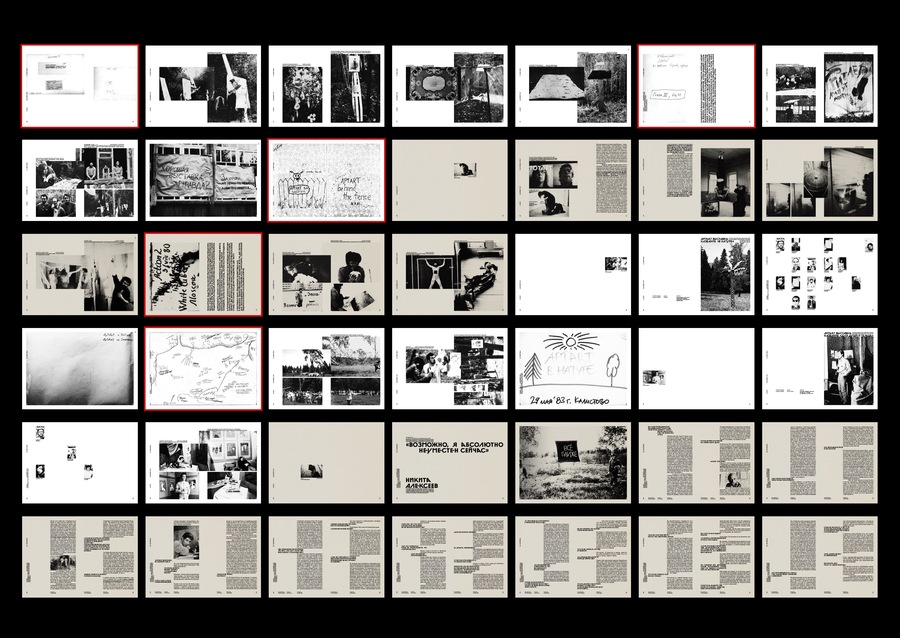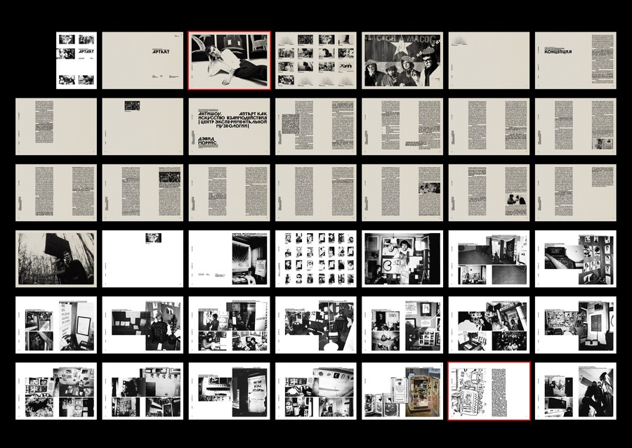 White pages are a section of the APTARTa exhibit. Vintage pages are text sections; sections on self-contained groups participating in APTARTa exhibitions. Red Line is a hidden page.