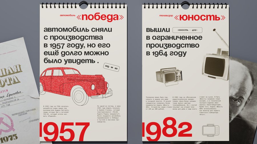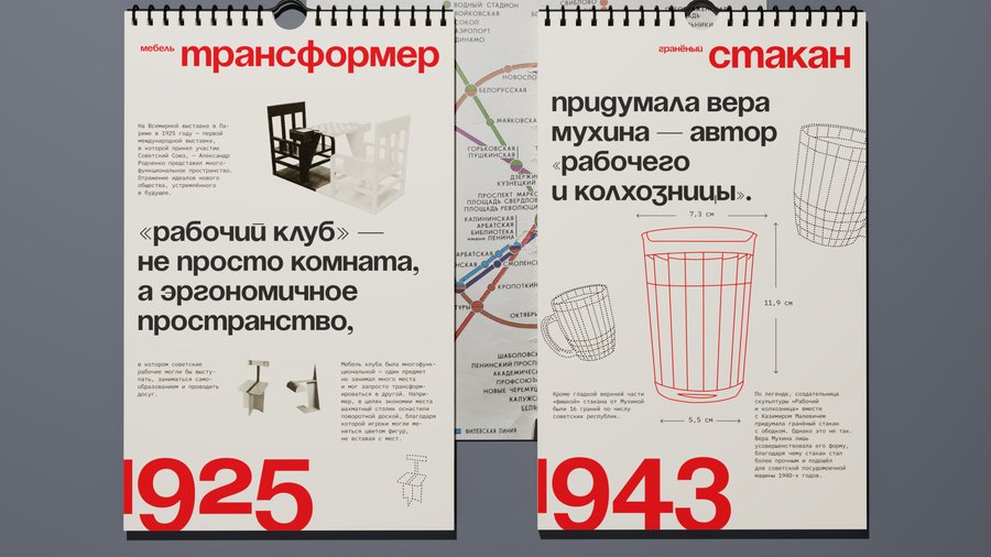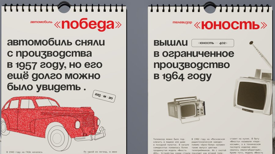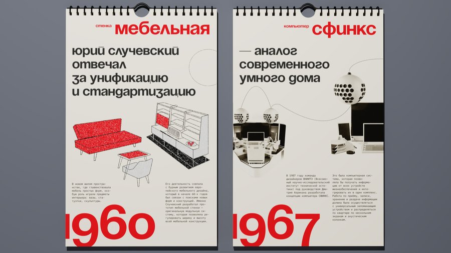 Каждый месяц посвящён одному культовому предмету советского дизайна. Основная задача — не уйти в подражание советским авангардистам и сделать макет относительно современным, при этом сохранив эстетику ушедшей эпохи.