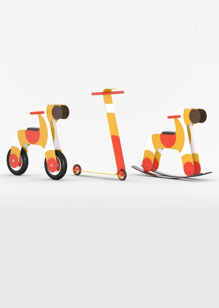 При изучении дымковской игрушки оказалась довольно очевидной идея увеличения фигурки лошади и использования её как основы для образа детских спортивных товаров.