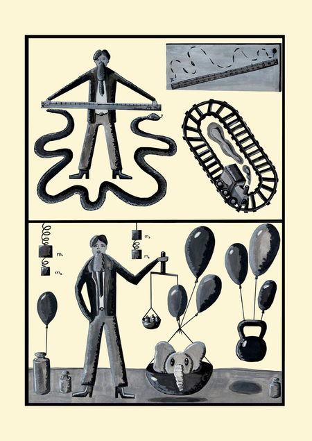 Проект представляет собой серию иллюстраций к учебнику по преподаванию физики, изданному в МГУ г. Саров. Все иллюстрации выполнены вручную. Главный герой иллюстраций — оммаж отцу-основателю российской ядерной физики — Игорю Васильевичу Курчатову. Главный Герой иллюстраций показывает нам основы физики на простых экспериментах.