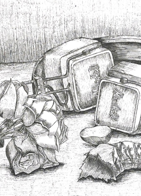 Натюрморт на тему несостоявшейся любви, оборвавшейся еще на моменте «конфетно-букетного» периода. В основу легли цветы, наушники и шоколадка. Все эти предметы так или иначе отражают трагичную историю любви, знакомую практически каждому.