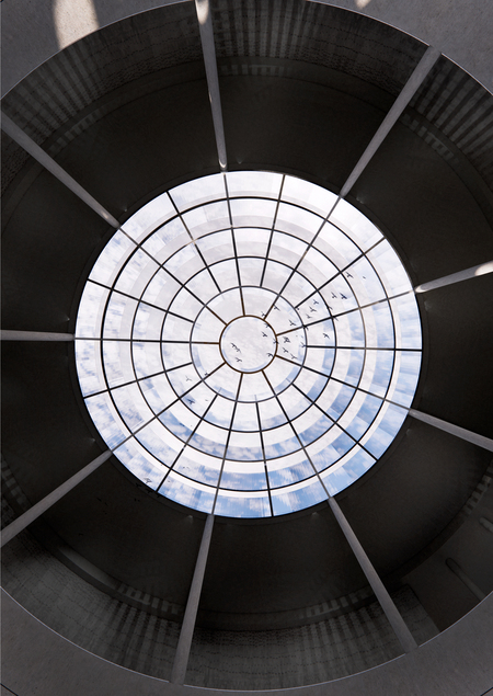 Также стеклянная конструкция привносят в интерьеры здания большое количество света, который наполняет все пространство, создавая яркие тени и отбрасывая узоры на пол.