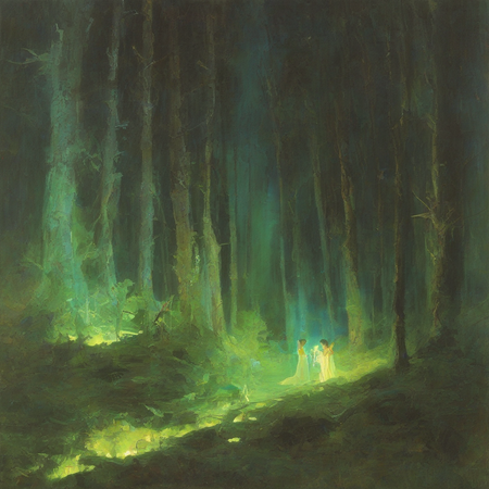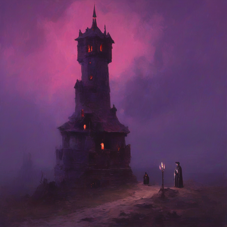 серия объединена визуальной поэтичностью, ночным освещением и тонкой драматургией света и тени — что напрямую отсылает к стилю куинджи. однако в моих работах появляется новый элемент — мистический нарратив. каждое изображение словно фрагмент истории: где-то герои встречаются у башни, где-то странствуют, где-то наблюдают за природными явлениями. всё это погружает в мир, где сочетается эстетика романтизма и сказочной готики.