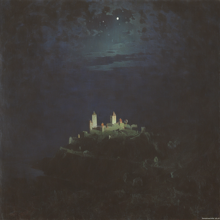 (1) photo in kuindzhi style, castle, midnight (2) photo in kuindzhi style, castle, midnight