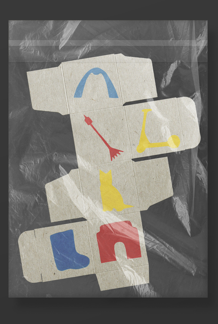 В процессе поиска я пришла к следующей логике построения листа: · константа задана типографическим «углом» — шапкой-названием и колонкой по правому краю листа, где раскрываются слова из азбуки; · динамическая часть реализуется через кубики, которые «вторгаются» в типографический блок и задают разные сценарии взаимодействия.