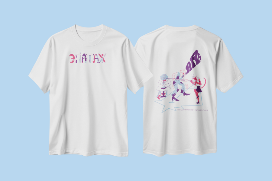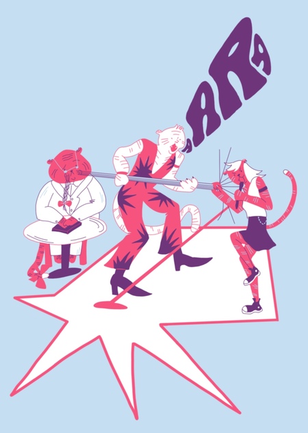 Серия иллюстраций принтов для футболок про тигров, влюбленных в музыку