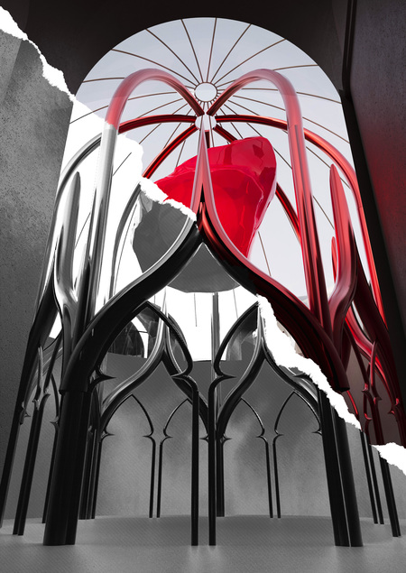 В здании музея посредством смешения контрастных архитектурных решений передаются основные смыслы алхимии, как явления.