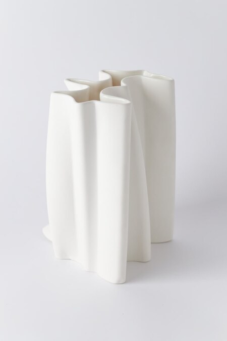 The BLOOM porcelain vase is a dynamic structure with the distinctive nature of an blossoming flower