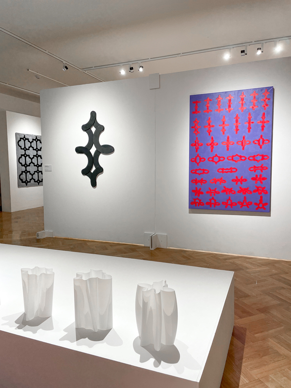 Prototypes of vases 3d printed from plastic. Personal exhibition «Designed and Produced. Language constructions of Victoria Nurislamova». All-Russian Museum of Decorative Arts, 2022