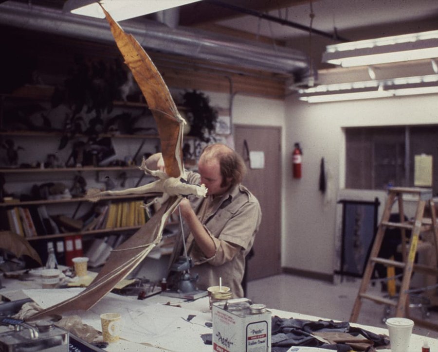 Внутри аниматроника находился металлический каркас с двумя десятками подвижных частей. Снаружи модель была обклеена козьей шерстью и десятью тысячами чешуек размером с ладонь.