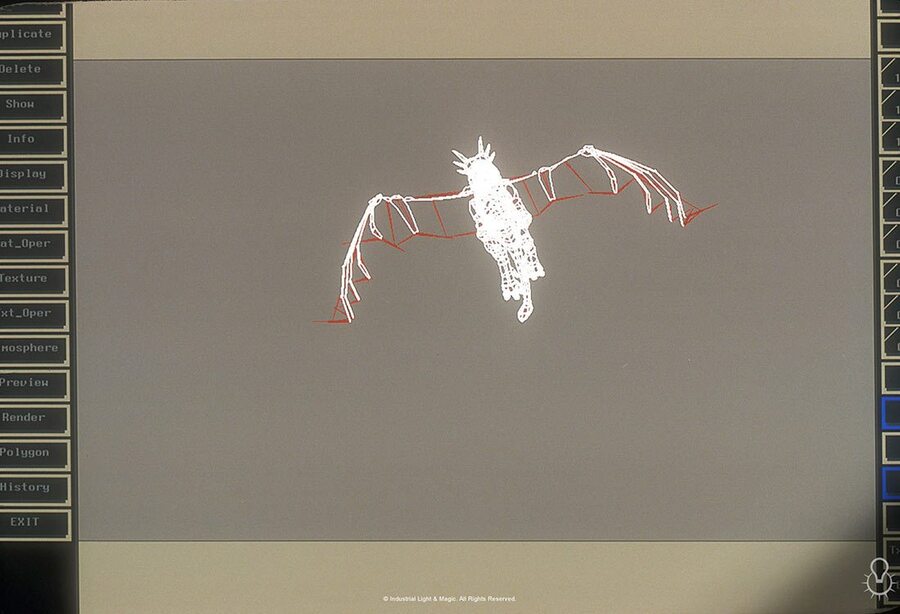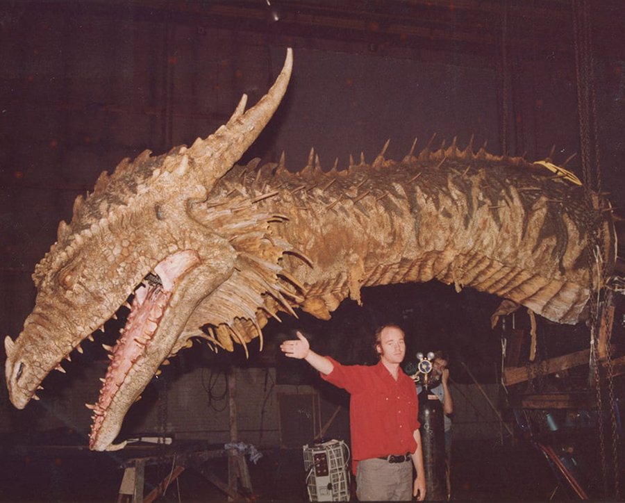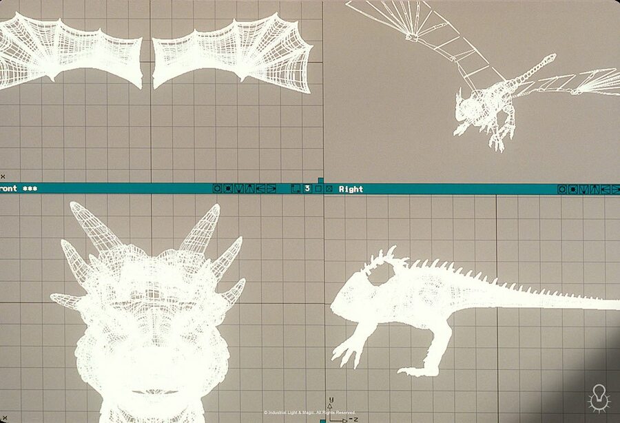 Практически во всех кадрах фильма с участием дракона аниматронные части были заменены трехмерной графикой, но для моделирования цифрового существа IILM опирались на макет. Они отсканировали аниматроника, детализировали модель с помощью текстур в программе Alias, добавив необходимые чешуйки, выросты, шрамы и складки.