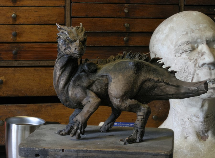 Процесс создания дизайн-макета Драко скульптором студии Tippet Studio Питом Конигом