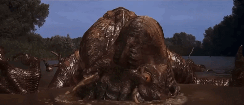 «Челюсти поддерживались двумя гидравлическими поршнями и сдвигались всего на шесть-десять дюймов. Отчасти это было сделано для безопасности — мы не хотели раздавить Денниса Куэйда. Язык был механизирован с помощью гидравлических цилиндров. Он был полностью подвижен и мог выполнять широкий спектр органических движений, управляемых четырьмя техническими специалистами».