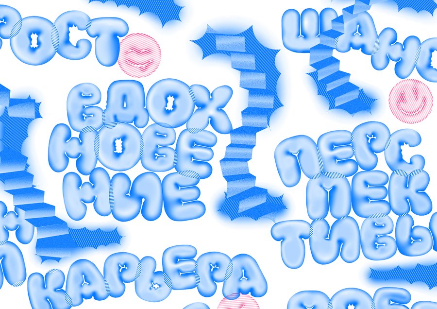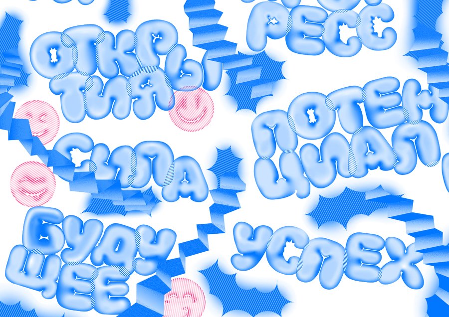Именно этой идеей был вдохновлён представленный паттерн для Спотти. Основные элементы паттерна — воздушные слова, ёмко описывающие понятие образования с точки зрения его значимости, и лестницы как метафора движения вверх, многомерности пути. Цветовое решение соответствует палитре VK Education, основной синий цвет был выбран в качестве подкрепления ассоциации с высотой. Приёмы с градиентами и штриховка, которые присутствуют в паттерне как в основных, так и в дополнительных элементах, являются его связующим звеном и отсылают к технологичности.