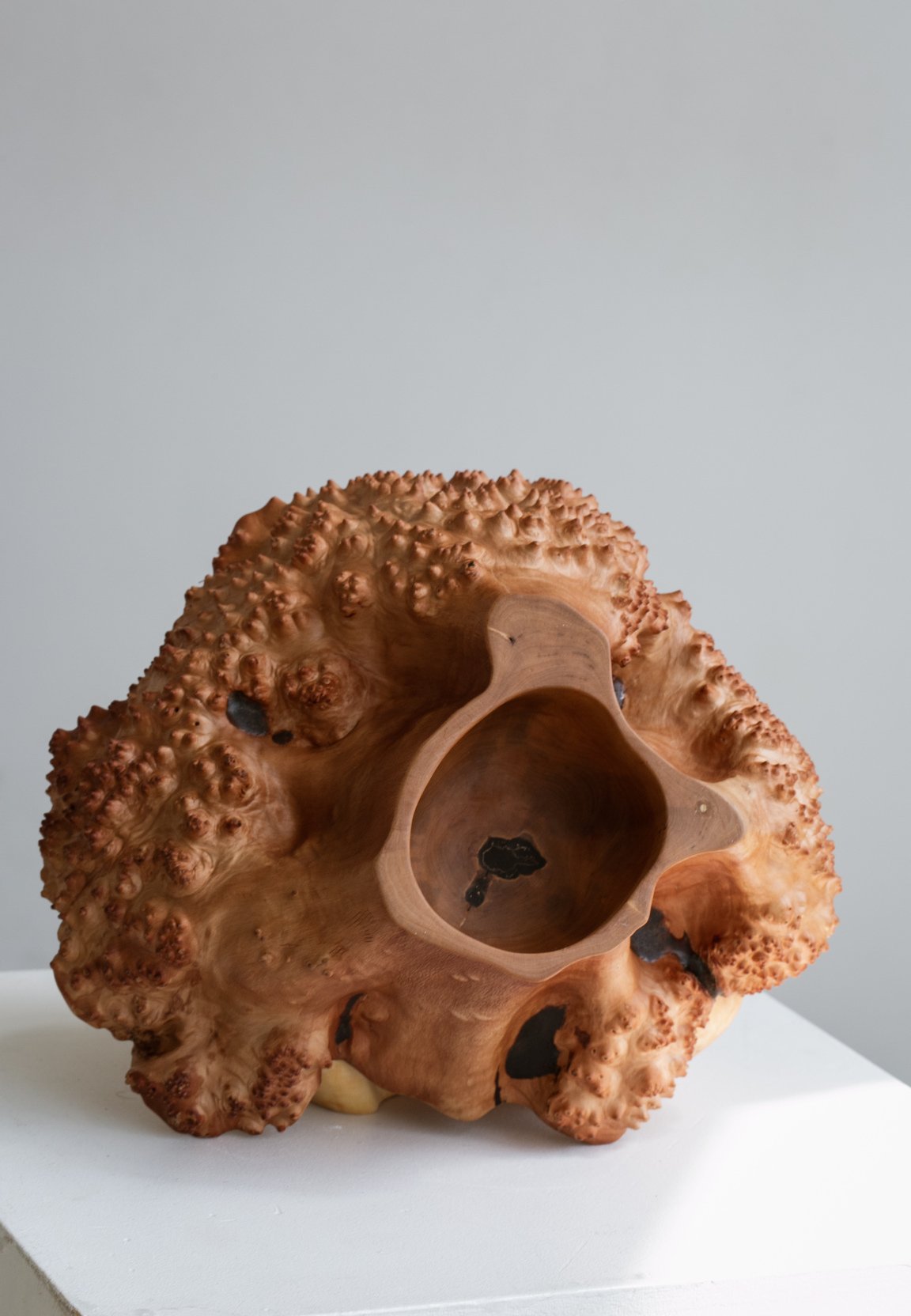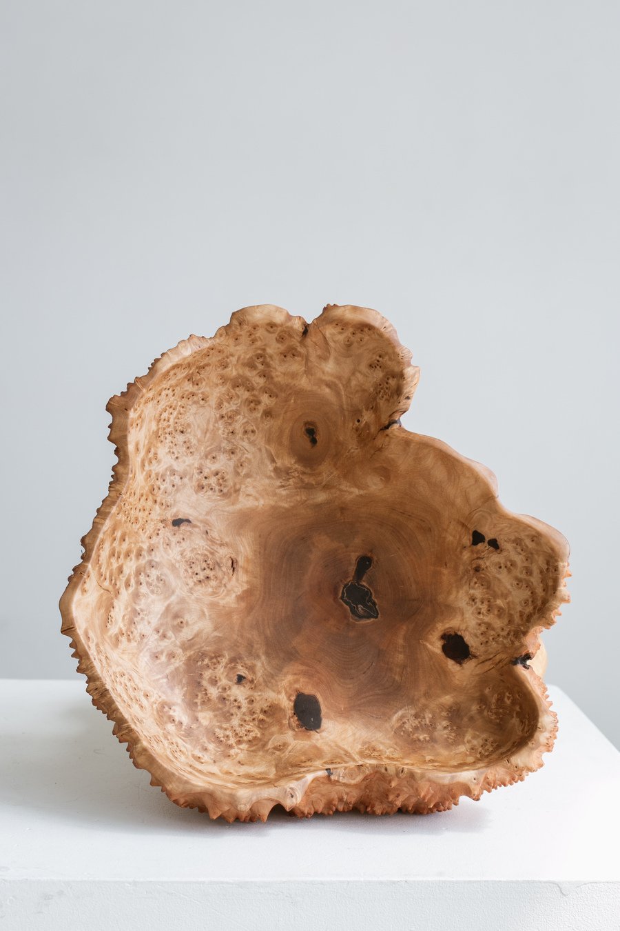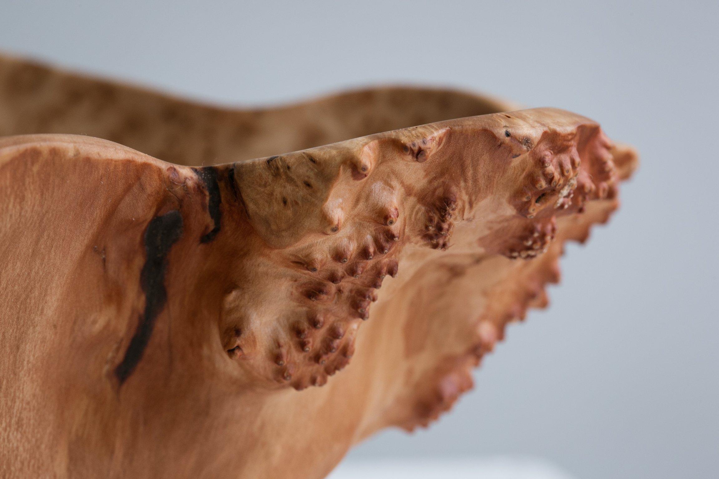 As a result of this laborious process, the rough heads of the burls are transformed into warm, tactile objects of mesmerizing beauty. Their unique pattern is similar to malachite and shimmers like silk. You can drink their beauty as a form of meditation.