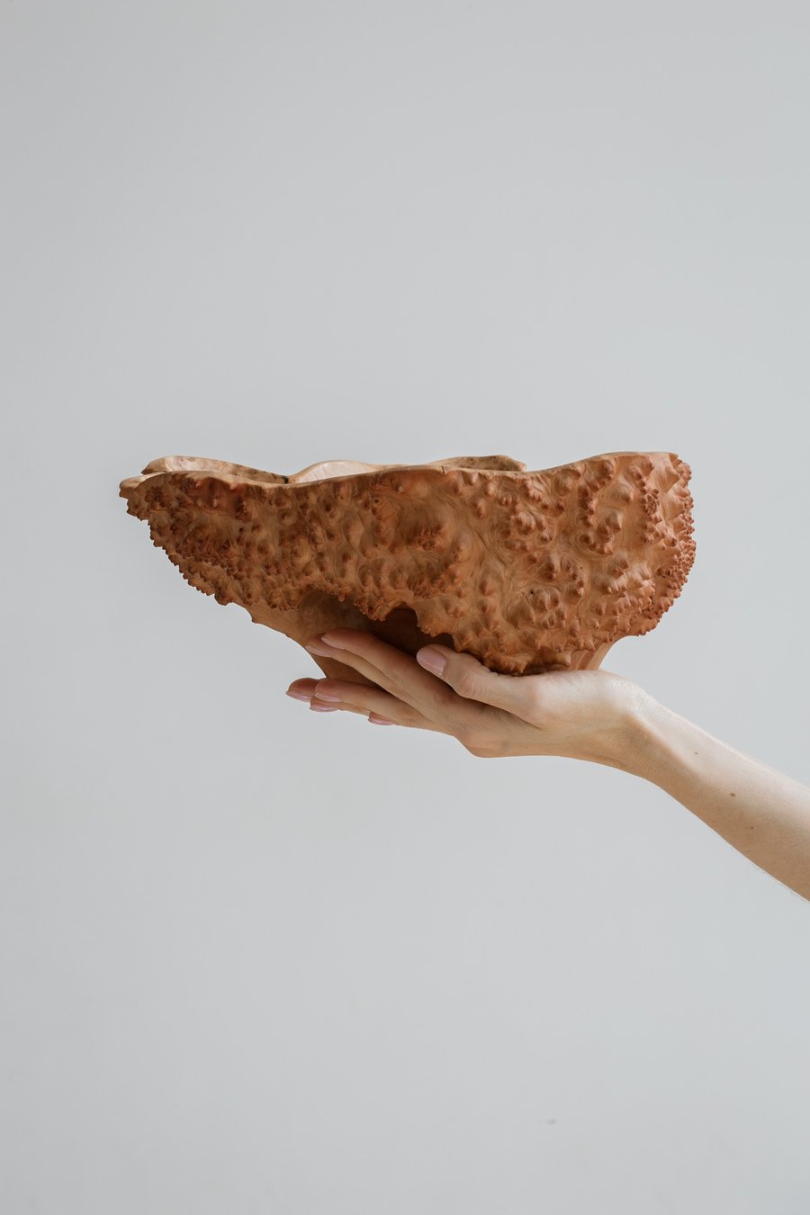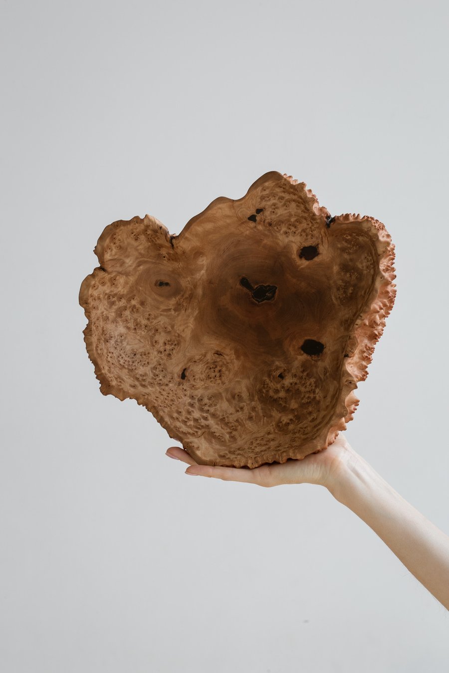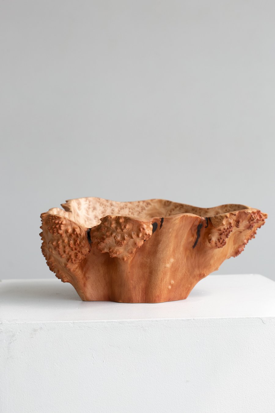 As a result of this laborious process, the rough heads of the burls are transformed into warm, tactile objects of mesmerizing beauty. Their unique pattern is similar to malachite and shimmers like silk. You can drink their beauty as a form of meditation.