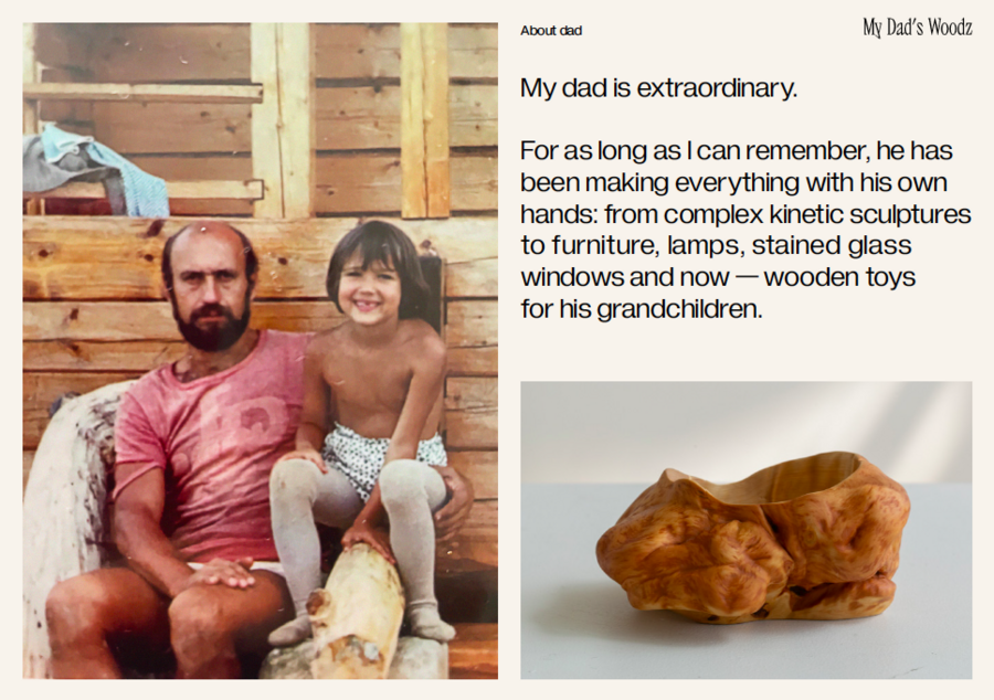 My dad, Nikolai Andreevich Krasko, is 70 and he is not using technology. Therefore, I (his proud daughter Krasko Olesya) am in charge of visuals, communications and branding in our project.