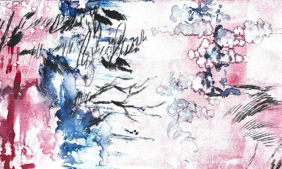 Серия монотипий об эмоциях, быстротечности и сомнениях. Абстрактные работы дополнены сухой иглой.