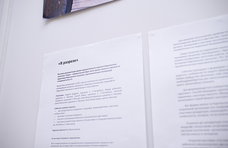 На выставке «В разрезе» представлены фото и видеоматериалы исследовательского и производственного процесса в арт-резиденции, а также фото и видео работ участников выставки «Система координат».
