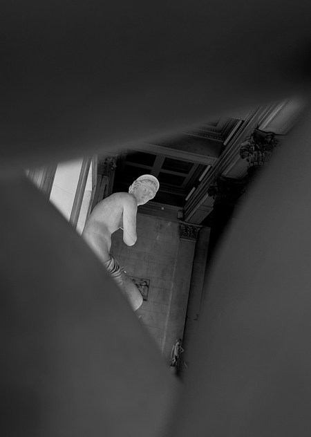 Работа состоит из серии фотографий скульптур в Эрмитаже. Сами скульптуры сняты через другие скульптуры, так появляются рамки. С помощью фотографий я стараюсь понять, что такое рамки и как музей может задавать композицию.